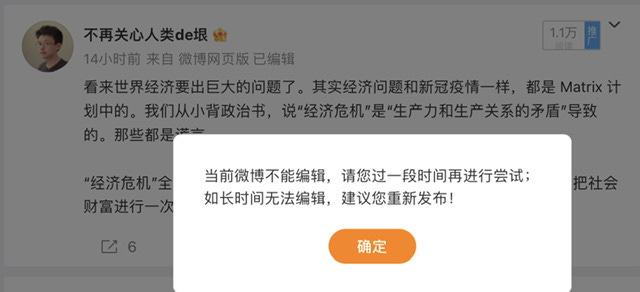 本帖昨晚发出来,现在已经不能编辑。经过朋友确认,除我自己之外其他人已经看不到了。所以其实已被微博悄悄删除,可见其中有某种真实性 ;)