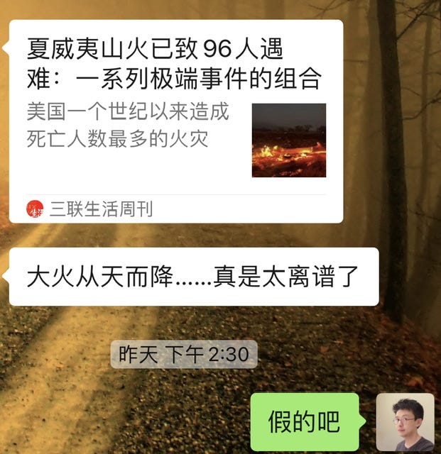 仔细想想这里的相似性。两个山火的“起因”其实都是人造的(尾迹飞机 -> O3 超标 -> 高温),所以“结局”也应该是人造的。另外,考虑到各种全球秘密行动,巨大的历史谎言,说明媒体造假是没有底线的,所以我有足够的理由怀疑这些“灾难”全都是假的。