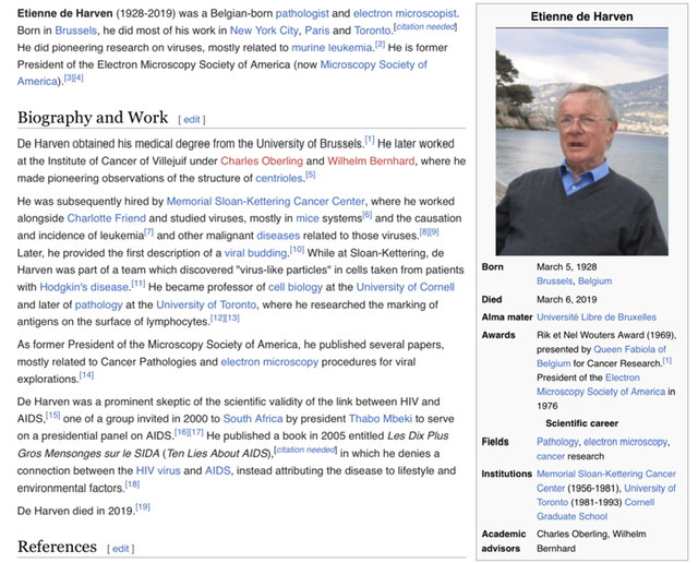 《Virus Mania》不是无脑阴谋论,它的三个作者都有 MD(医学博士)或 PhD 学位。跟“阴谋论”不同,它的每一个论据都是有引用出处的,基本来自正式发表的医学期刊。这本书的前言作者之一是病毒学先驱者和电子显微镜专家 Etienne de Harven(医学博士,教授)。他曾任美国电子显微镜协会主席。