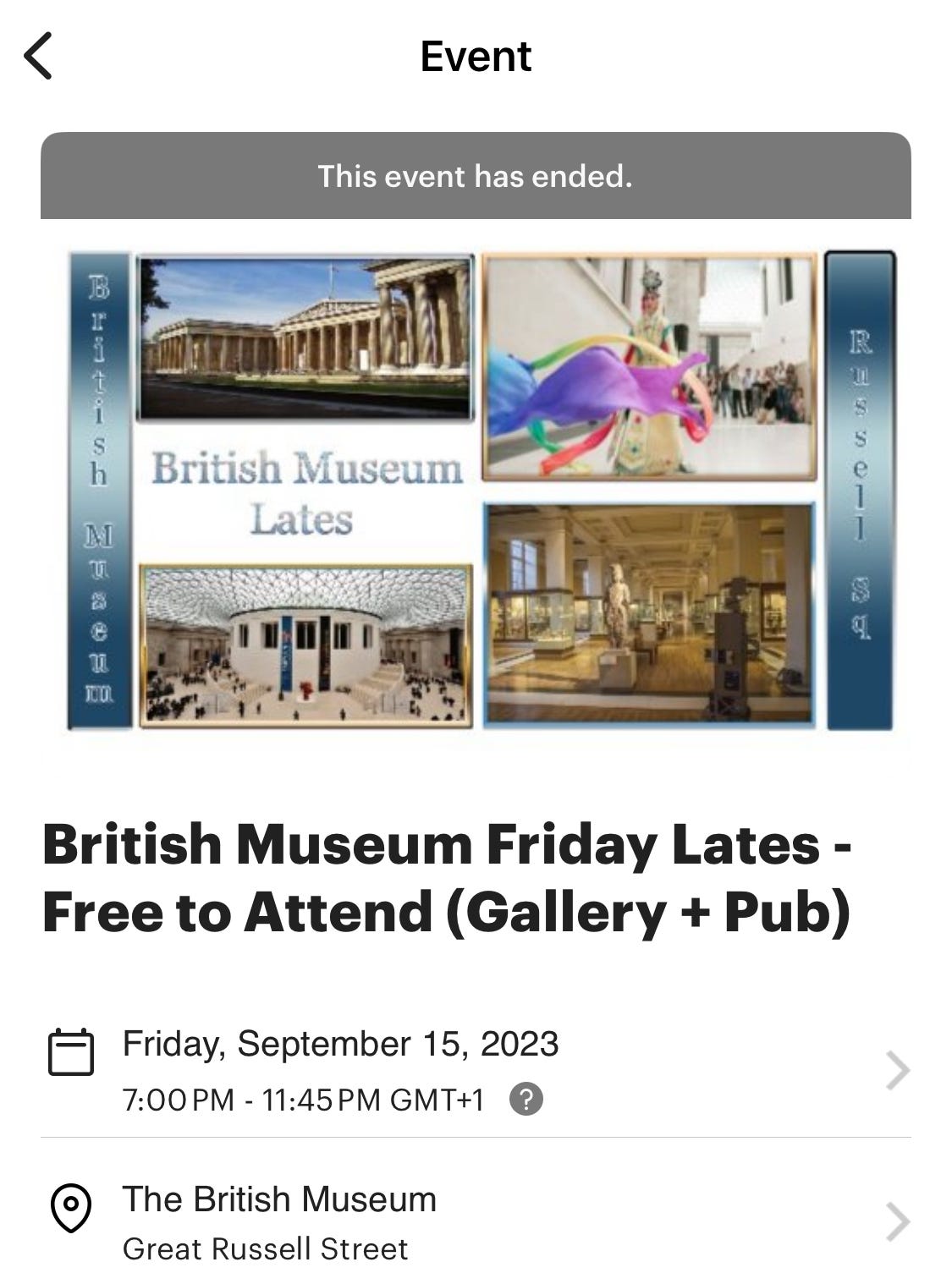 最初去大英博物馆的时候,是没有空气清新剂的。但 9 月 15 日我参加了一个在大英博物馆进行的 meetup 活动,是在周五的夜间举行的。大英博物馆之类的博物馆都有周五的“夜间展”,会开到比较晚的时间。那天我去了,发现展厅里有比较重的空气清新剂气味。