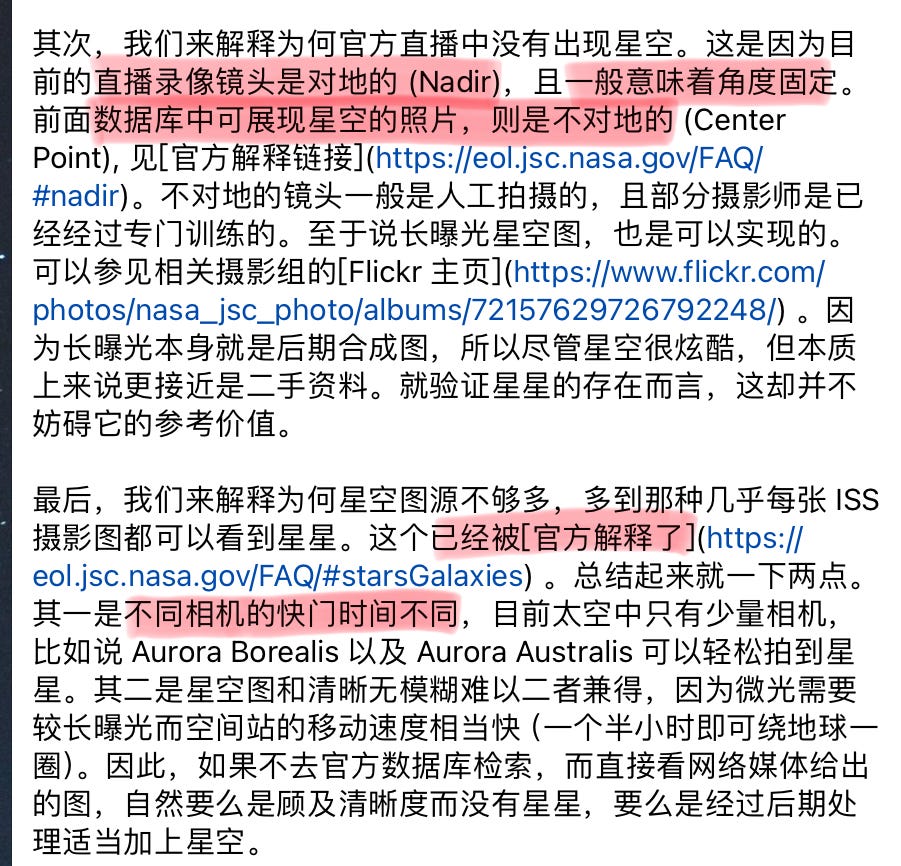 TG 群里经常出现的现象就是,有些人拿出 NASA 给的各种信息和数据,说这些证明了就是拍不到星星。我举几个例子: