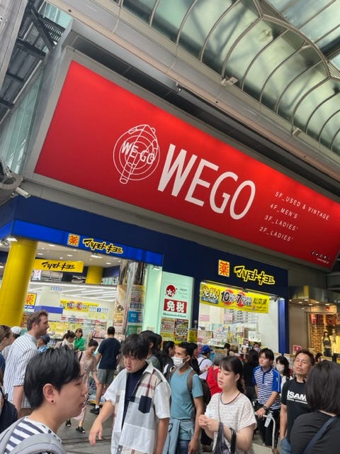 还有一家叫 WEGO 的药妆店,距离门口很远就闻到一大股空气清新剂气味,以至于我开头以为整条街(有顶棚的商业街)都是这样,其实是从这家店出来的。其它药妆店都没有这个气味,所以这显然不是里面卖的产品的气味,而是特别释放的。