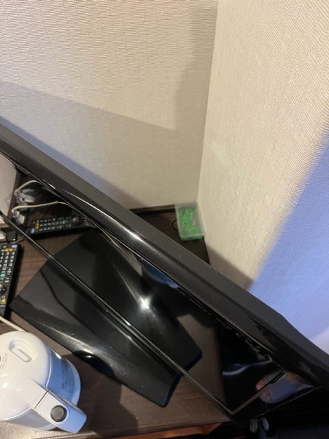 第二天晚上我仍然闻到这个气味,就又开始找。终于发现电视机后面的墙角里有一个盒子,里面有一些绿色的小块。