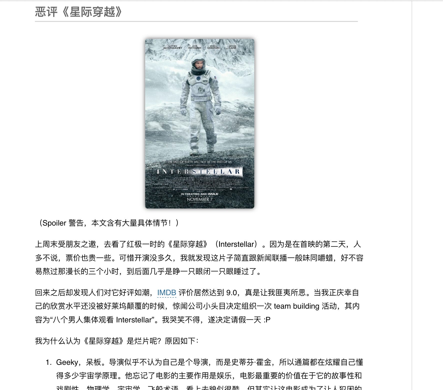 又想起《恶评星际穿越》
