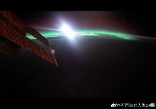 这个影片的片段,里面有各种地球灯光夜景,云层闪电,绚丽多彩的北极光和星空。但很明显,这不是直播,而是早就做好的电脑动画。