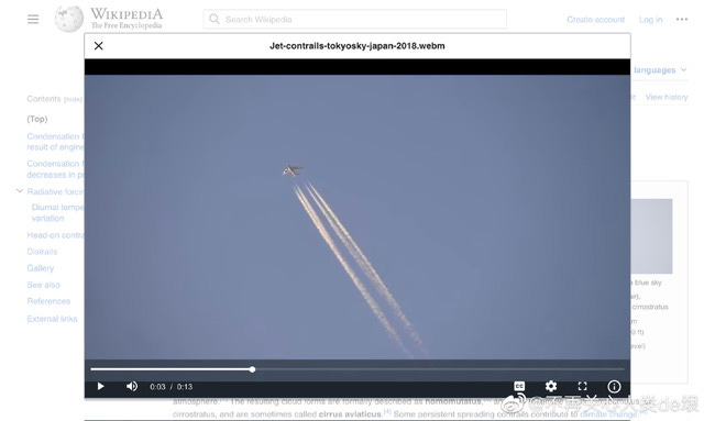 Wikipedia 的做法完全一样,直接把化学尾迹飞机的视频放在「凝结尾迹」的网页上,说那就是「凝结尾迹」。