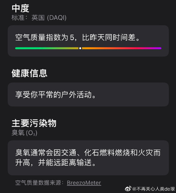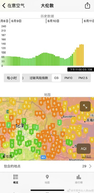 天气为什么这么热Yin WangJun 11, 20232Share1. 今天伦敦气温达到了罕见的 30 度。2. 傍晚出现大量尾迹飞机。3.「在意空气」显示 O3 浓度达到 138(中度污染),部分地区为“空气污染高”。4. iPhone 的“天气app”也显示“中度污染”,主要污染物为 O3。5. 半夜室外气温还有 19 C,室内气温高达 28 C。英国的房子大部分没有空调。6. O3 是比 CO2 保温能力强 1000 倍的温室气体。7. 几天前,成都发布了“臭氧重污染天气黄色预警”。根据以上线索,你说这是什么戏?PreviousNext