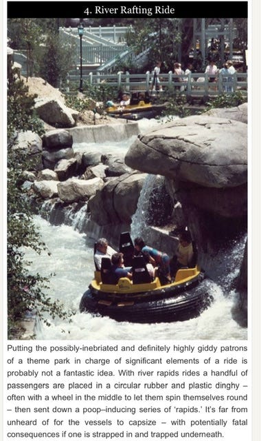 其实在椅子上等他们排队的时候,我研究了一下这些主题公园,发现一些不为人知的负面信息,比如这篇文章《10 Most Dangerously Theme Park Rides of All Time》,它说这些主题公园的游乐项目其实有些很危险,出过不少事故。这篇新闻说,一个 19 岁的少女在土耳其一个游乐场的设施上严重呕吐,父母请求工作人员立即停止机器的运转却被拒绝,结果导致少女因为呕吐物进入气管,窒息死亡。