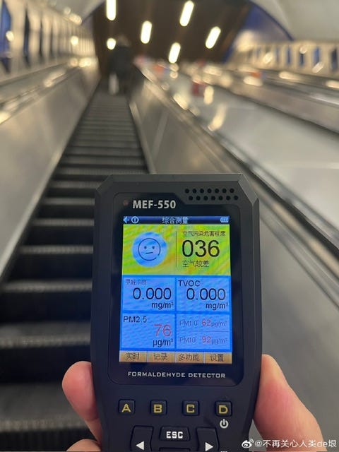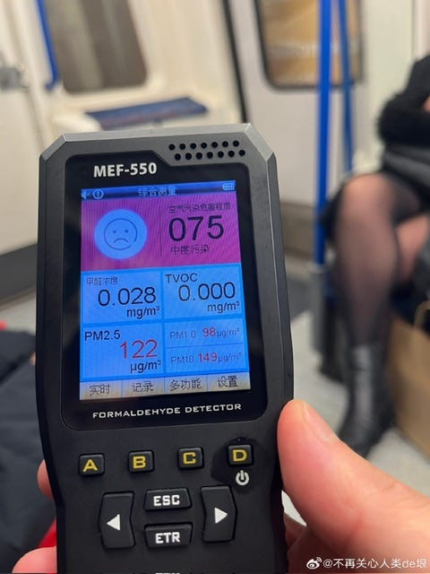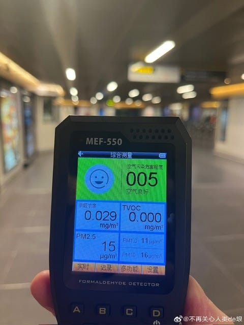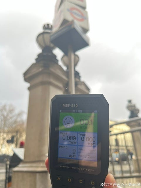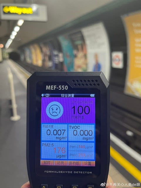 周日在伦敦的时候参加了一个聚会,认识了一些新朋友。他们告诉我,新冠疫情当时在伦敦很严重,说伦敦地铁里那么多人,当然很容易传染。我笑了,拿出之前在地铁里拍的空气检测仪的照片给他们看,大家都惊呆了。