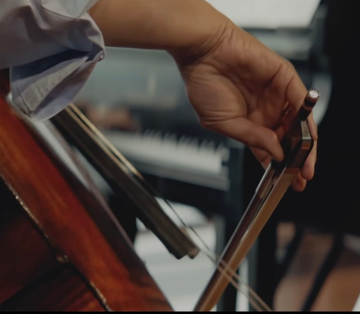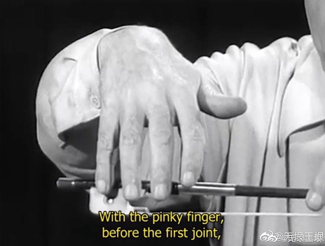 还有这个视频,能看见不论弓在什么位置,拇指都是伸直的,稳稳地按着琴弓。