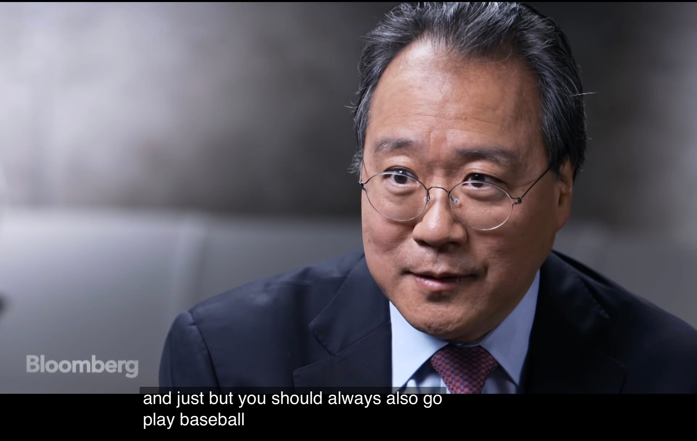 马友友 7 岁的时候遇到 Pablo Casal,为他演奏了一曲。马友友演奏之后,Casals 说:"你的大提琴拉得很好,但你也应该去打棒球!" 你能明白此中的深意吗?因为拉大提琴很像打棒球,旋转的棒球。另外,这类体育运动可以训练人的空间感知能力,提高对乐器的定位和操作能力。