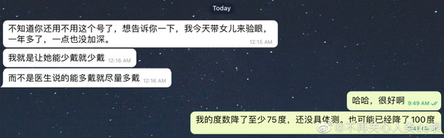 差不多一年前的时候,我进行的“控制和逆转近视”的科普,到今天已经看到比较明显的效果了。我发现一直尽量不戴眼镜的人,近视度数一般都不会超过 200 度。现在又有了新的证据(如图)。