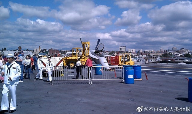 有人可能以为是需要“保密”,所以不给人看飞机。但在地面上展览的时候,这些战斗机都是可以给人看的,甚至可以爬上去照相。所以这应该不是为了保护什么技术机密,怕人近看弄明白了。在美国的中国人可能都去看过航母了,有人在上面看见过真的飞机吗?有的话可以告诉我,反正我估计上面都没有飞机。
