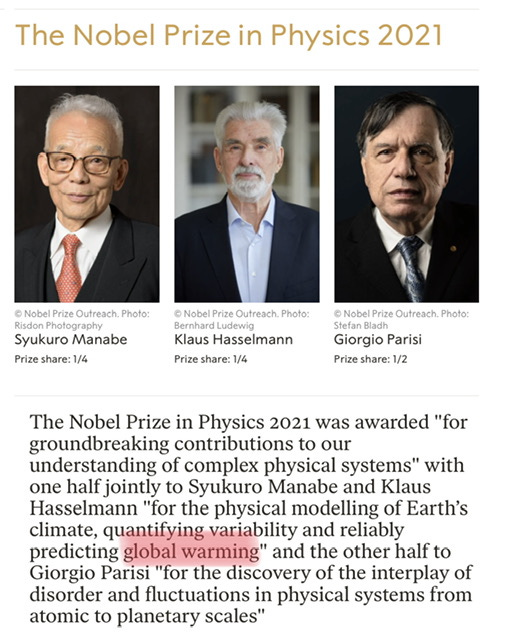 他们想让大家相信“全球变暖”的假象,就发一个诺贝尔奖给这个“成果”,用这种权威,而不是科学证据来让人们信服。所以每一个诺贝尔奖得主都值得怀疑,因为他们绝大部分都是 Matrix 安排的角色,包括爱因斯坦在内。不过也许少数是例外。