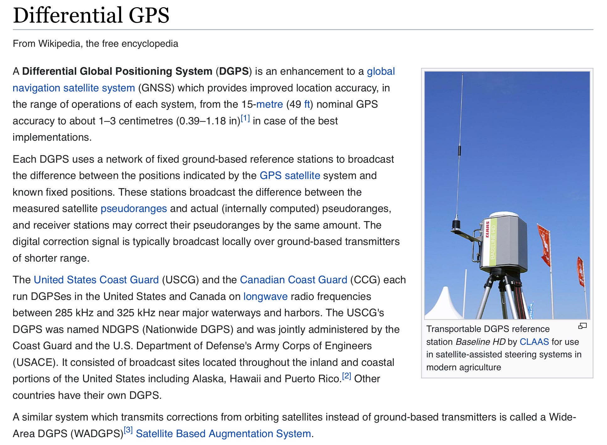 了解到一些关于航海导航的信息。航海的时候 GPS 系统也是靠不住的,都在用「Differential GPS」,一种基于地面基站的系统,使用长波从港口往海里发射信号。