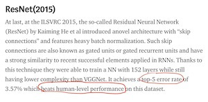 The first deep learning model claiming to achieve human-level performance was ResNet, developed by Microsoft Research. Soon afterwards, a few other "superhuman" vision models were developed, all based on similar methodology and the same measuring standard, top-5.