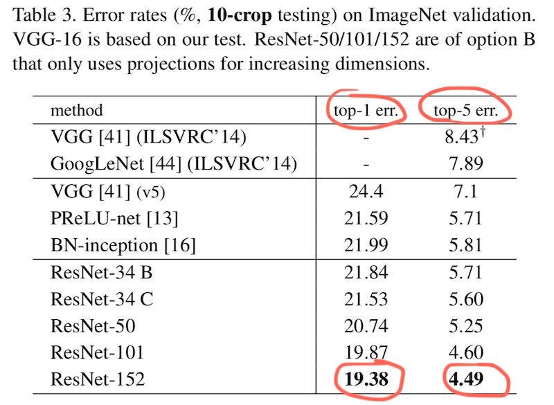 But the problem is, do we get five chances to recognize an object? What if there is only one chance? This is called top-1 accuracy. Using top-1 accuracy, ResNet's error rate was 19.38%.