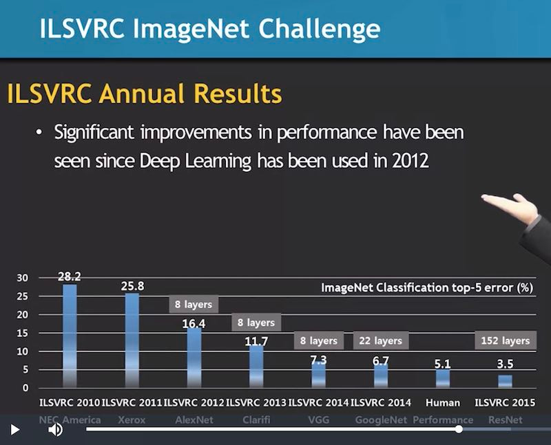 And this is considered to have passed the top-5 accuracy test. Top-5 basically means that given five chances and you get the right answer in one of them, then this counts as a correct image recognition. Given hundreds of pictures, then they calculate your error rate.