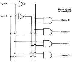 From the above, I hope you have seen that the value of A partially selects half of the AND gates -- it is either the set {X, W} or {Z, Y}. By "partially select", I mean they are not fully selected, because we haven't taken B into account. At this point, I hope you have noticed that A is in fact doing one step of a "binary search".