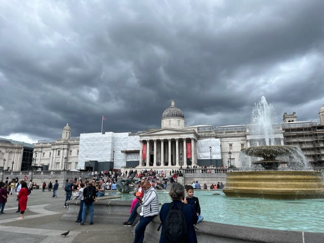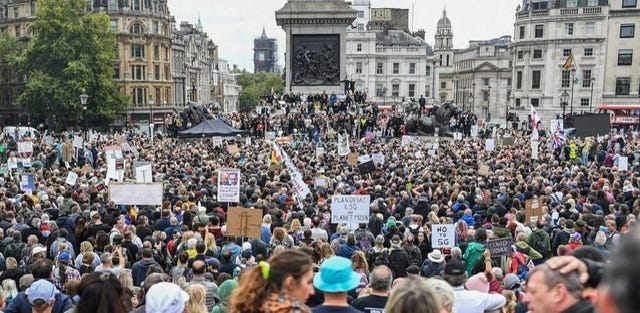 又来到这个地方,伦敦的 National Gallery。正好在两年前的今天(2021 年 7 月 24 日),这里举行了一场抗议疫情政策的大型游行示威。没想到英国这么“自由”的国家,居然需要进行“自由大游行”。也就是从这些演讲中,我第一次明白了,像疫情这么巨大的事件,居然可以是一场骗局。我第一次听说,病毒是不存在的,而疫苗全都是假的。