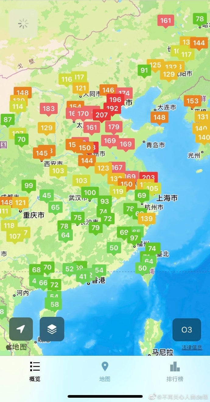 而且北方高温尤为严重。非常简单,他们在北方洒了更多的 O3 而已。