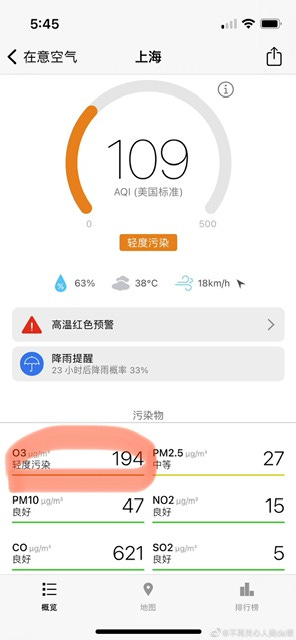 化学尾迹不一定都撒的都是用于让人生病的有毒物质,也可能有其它用途,因为里面的成分是随时可以换的,可以满足不同时期的不同需求。去年 7-8 月在上海看见化学尾迹的时候,我同时发现空气质量数据里的 O3(臭氧)含量很高。同时间,成都等地也出现了化学尾迹,而且出现 O3 很高的情况。