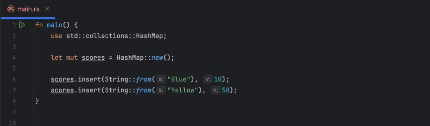 所以为什么 Rust 语言要这么聪明,从下面的 scores.insert() 插入值的地方去“推导类型”呢?其实是没必要的。让程序员直接把类型写进变量声明的地方,就像 RustRover 显…